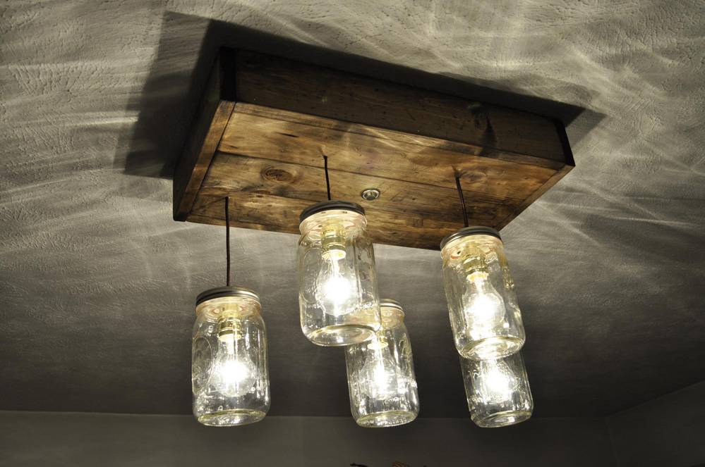 Пропустив через отверстие в крышке провод от источника света, нужно поместить его в банку и плотно закрутить крышку. Получившийся светильник можно поставить на стол или подвесить на крюк просто так. Но гораздо интереснее он будет смотреться, если сделать для него красивый и оригинальный подвес.