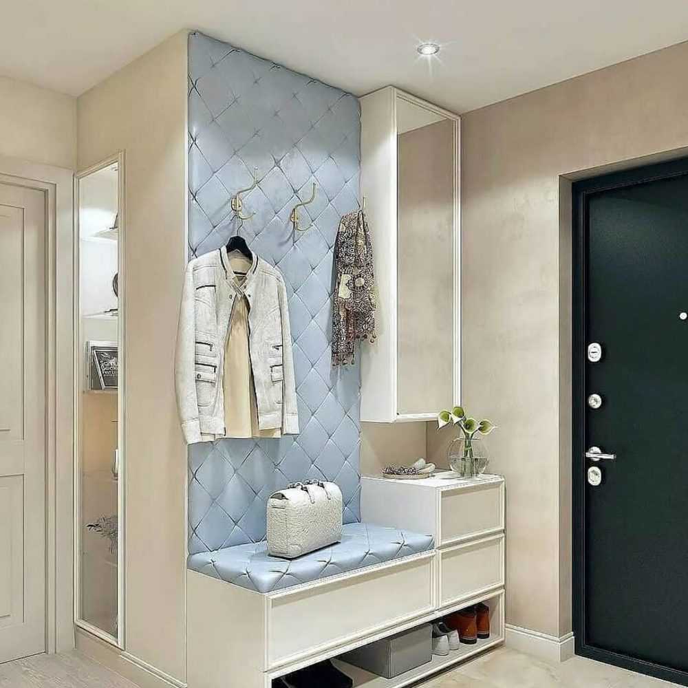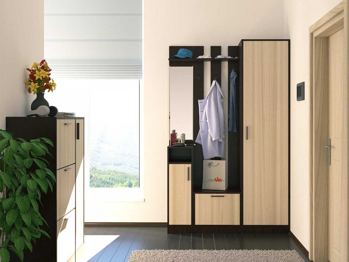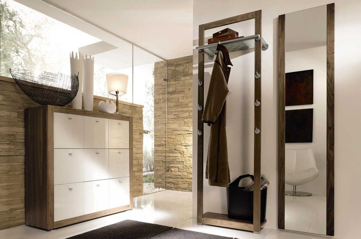 Шкаф. Он необходим для размещения верхней одежды и обуви. Вы можете поместить на стену и вешалку, но лучше если одежда будет скрыта от посторонних глаз, так у вас получится наиболее гармоничный вид. Наиболее удобный вид – шкаф-купе. Он не займет много места, но вместит все необходимые элементы для хранения вещей.