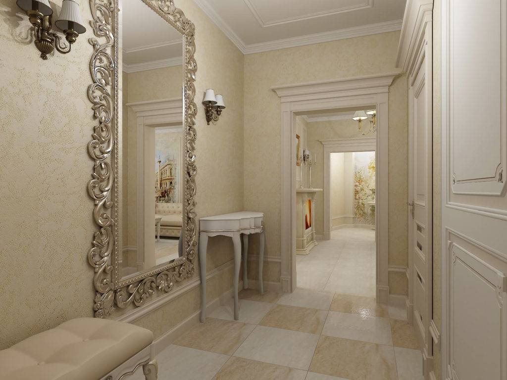 Вот это поворот: Небольшая прихожая с лепниной, багетами, мебелью и отделкой под классику