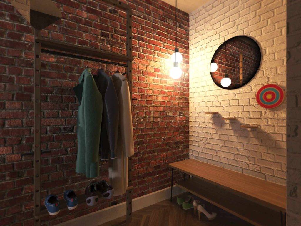 Стиль лофт для современной квартиры считается очень модным направлением. Элементы кирпичной кладки, цвета жжёной глины, натуральные бруски дерева, обои синего цвета. Балки, и крупные предметы мебели прекрасно подходят для квартиры-студии или длинной прихожей;