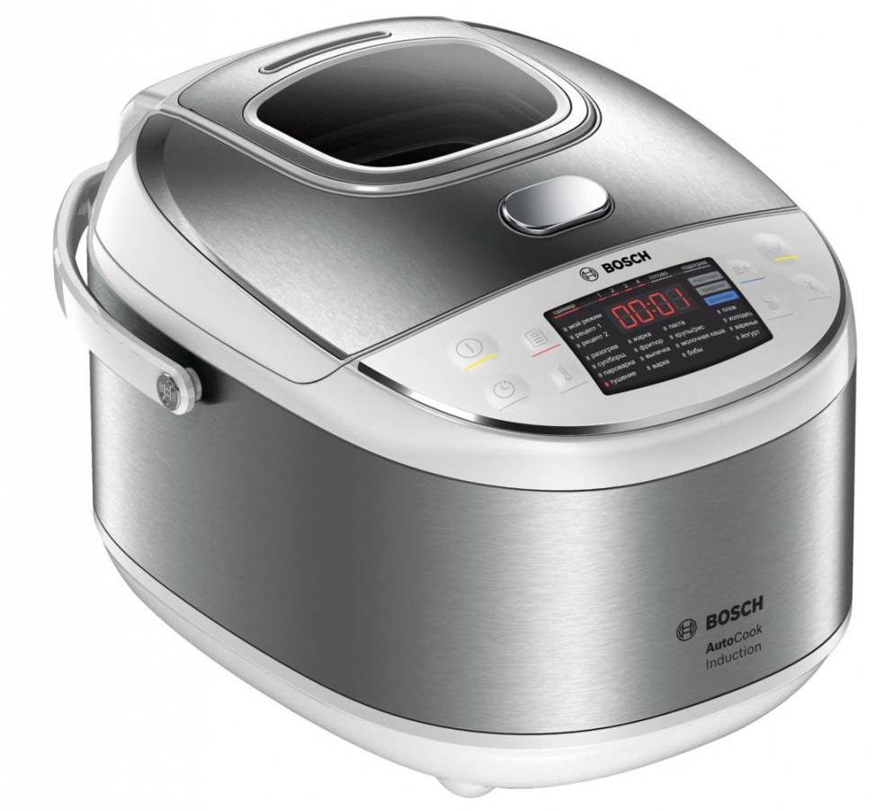 Bosch MUC48W68 — это, безо всякого сомнения, одна из самых лучших мультиварок рейтинга и рассматриваемого сегмента бытовой техники вообще. Однако при стоимости более 14000 рублей назвать мультиварку подходящим решением для широкого круга пользователей нельзя. Данное устройство следует выбирать в том случае, если вы хотите получить превосходное качество во всех деталях мультиварки и великолепную функциональность, в которой найдутся режимы под любые предпочтения. Здесь доступно огромное количество стандартных программ, но если вам их не хватит, то MUC48W68 позволяет записать два пользовательских рецепта. Мощность данного агрегата, к слову, составляет внушительные 1200 Вт, что позволяет быстро готовить любую еду. Среди уникальных возможностей в этом устройстве есть функция индукционного нагрева. В комплекте с Bosch MUC48W68 поставляется тефлоновая чаша на 5 литров, мерный стакан, ложка, половник, высококачественная пароварка, а также корзина для картошки фри.