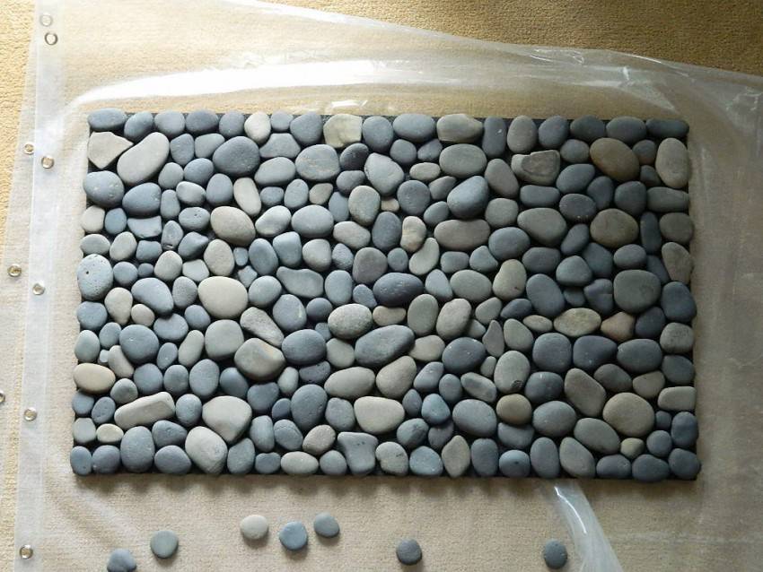 Если вы собираетесь использовать предмет нашей беседы в ванной, не стелите коврик из гальки для детей: могут и поскользнутся, да и после горячей воды холодный камень на пользу не вякому пойдет.