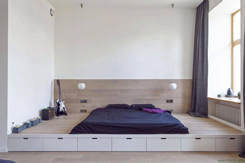 Основой такой конструкции является бетонное возвышение, отделанное напольным покрытием. Сверху устанавливается спальное место.