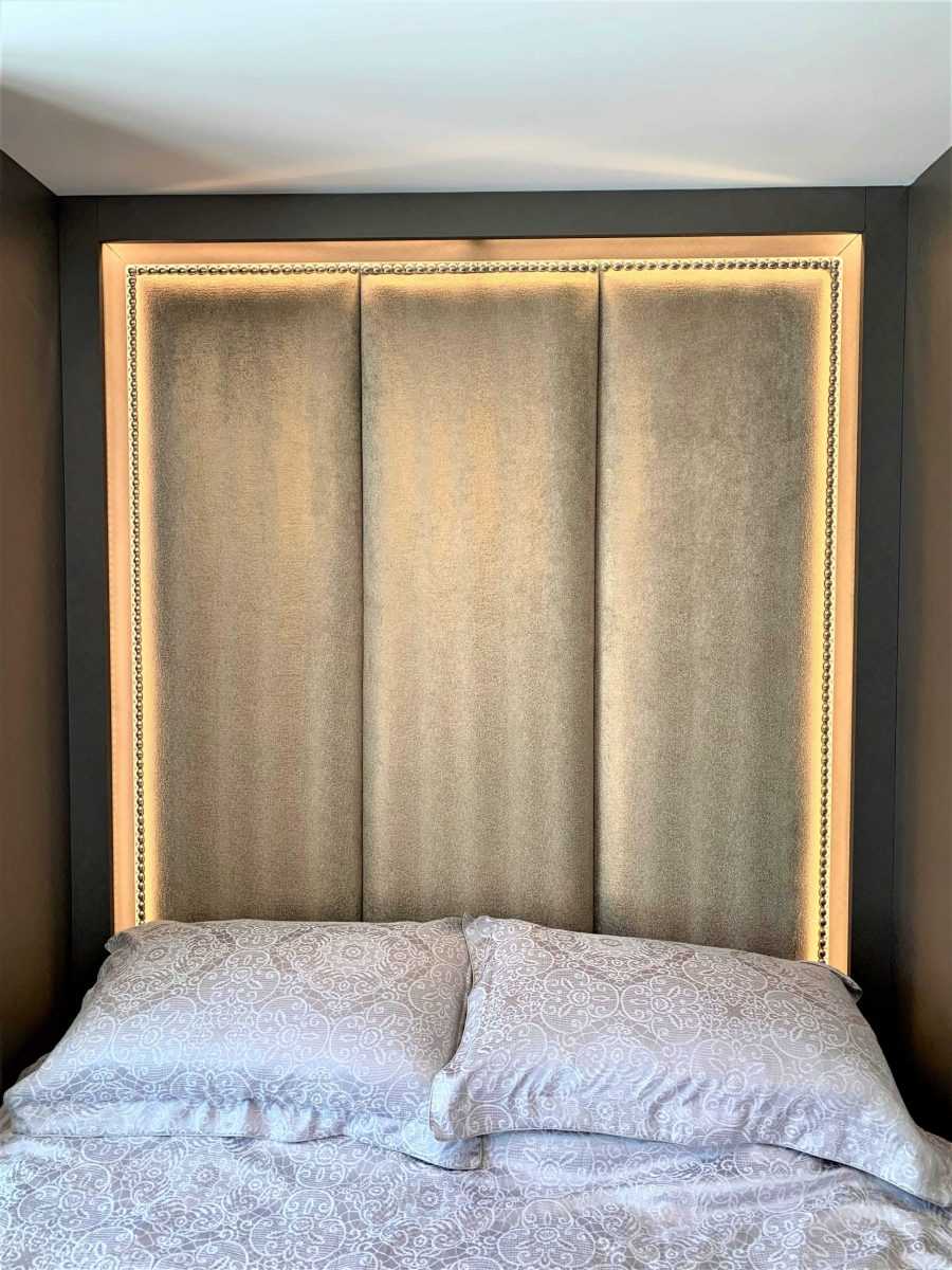 Планировка комнаты с мебельным гарнитуром над изголовьем и у боковой стены Источник Pinterest