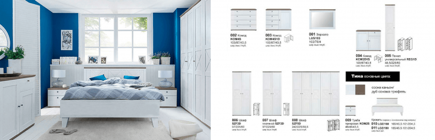 На фото модульной спальни, представленном ниже, представлены несколько секций, которые тоже были приобретены не в комплекте.