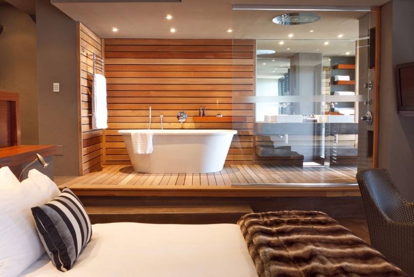 На российском рынке такой формат пока чаще встречается в «половинчатом» варианте – это либо спальня с гардеробной, либо спальня с отдельным санузлом.
