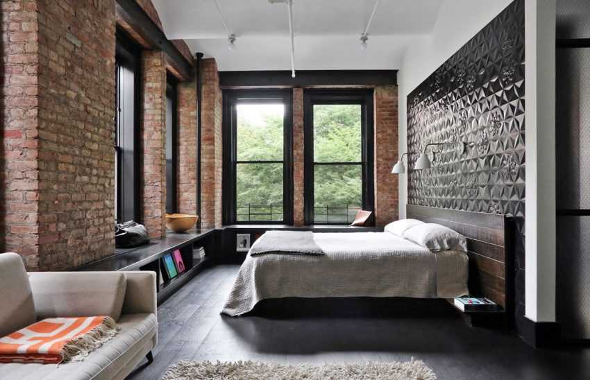 Для стиля лофт необходимо использовать кирпич или обои с имитацией кирпича.