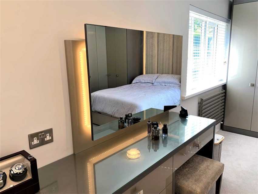 Аналогичным способом все происходит и в спальне с прямоугольными формами. Единственное, от чего предостерегают дизайнеры в этом случае, так это «задвигания» под стены остальной мебели, чтобы не столкнуться с эффектом колодца.