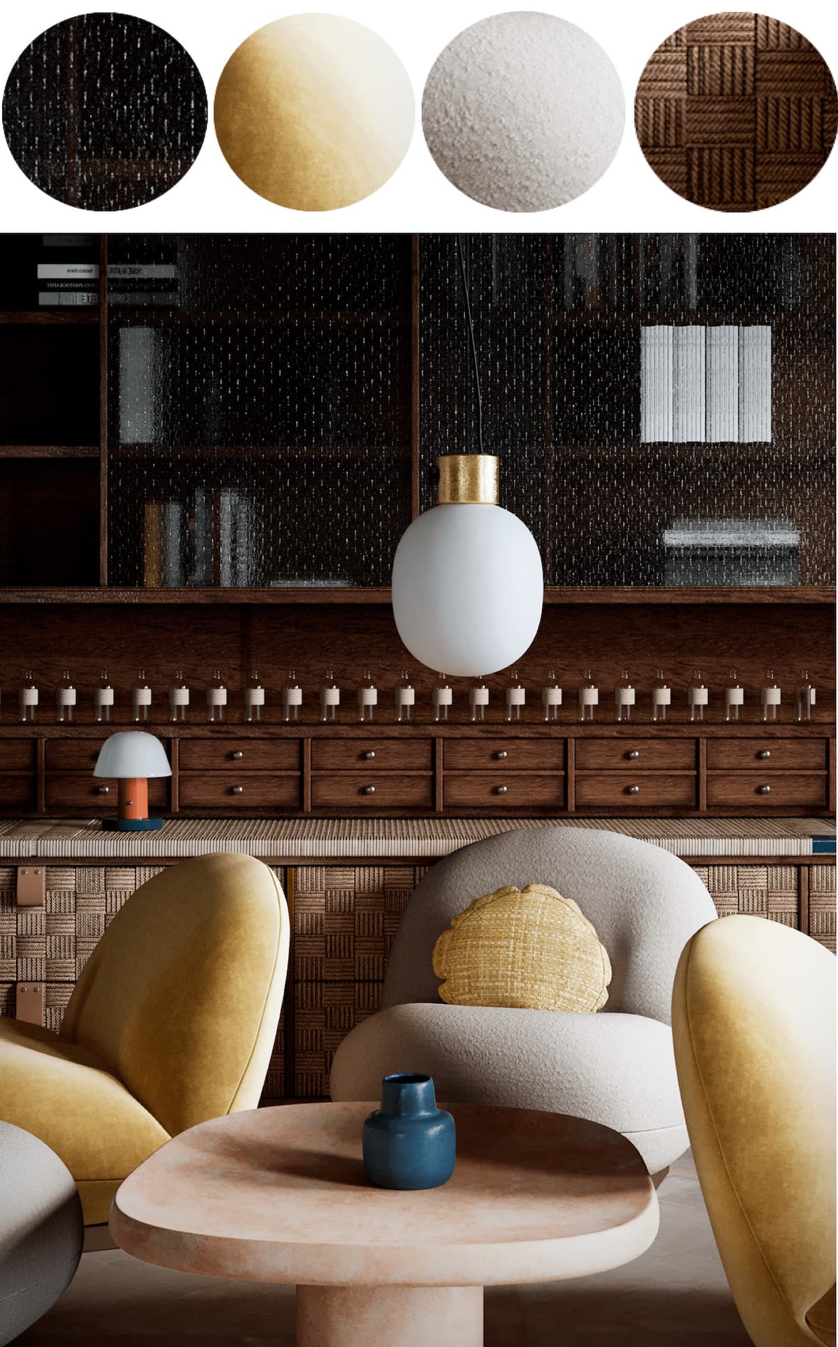 Прохладный и нежный многогранный миндаль преображается в зависимости от соседствующих с ним цветов. Оригинальное сочетание составляет с насыщенной синевой, глубокой зеленью, графитом. Может миндальный тон доминировать в интерьере или исполнять вспомогательную роль цвета-компаньона.