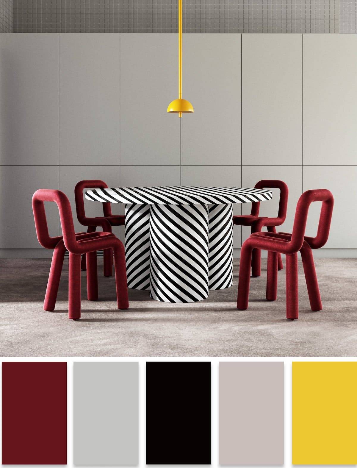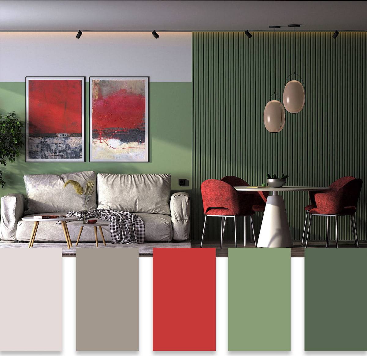 Создать атмосферу комфорта и уюта можно, применяя модные цвета 2022 и различные комбинации контрастных оттенков. Фон может быть выполнен в спокойных или ярких тонах. А далее к этому фону добавляйте цвета другой тональности. Например, с красным хорошо будет гармонировать бледно-желтый, теплый оранжевый, бежевый цвет.