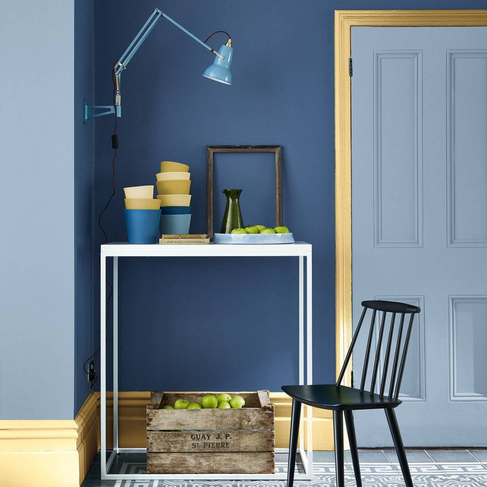 Пример колор-блока, созданного с помощью краски Little Greene. Цвета: Grey Stone (276), Sunlight (135), Woad (251).