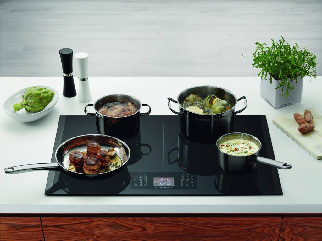 Тепло выделяется непосредственно в кастрюле. Если кастрюлю убрать с индукционной конфорки, нагрев прекратится. Это и делает индукционные плиты более экономичными — нет промежуточных потерь тепла. Индукционные плиты также более безопасны в использовании, так как они меньше нагреваются.