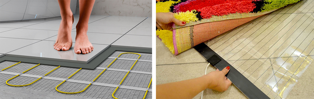 - стационарные. Их укладывают под покрытие с высокой теплопроводностью. Это может быть керамическая плитка или специальные сорта ламината;