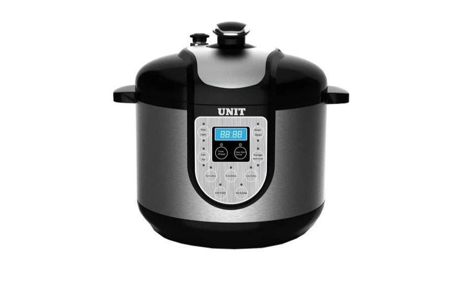 Мультиварка-скороварка от ТМ UNIT имеет 10 автоматизированных программ. Прибор оборудован чашей вместительностью 6 л. Корпус металлический. Поклонники здоровой пищи оценят контейнер для готовки еды на пару. Дизайн мультиварки-скороварки классический. Клапан для выпуска пара расположен на крышке. На корпусе имеются 2 ручки из пластика для переноски. Экран и управляющие кнопки находятся сбоку.