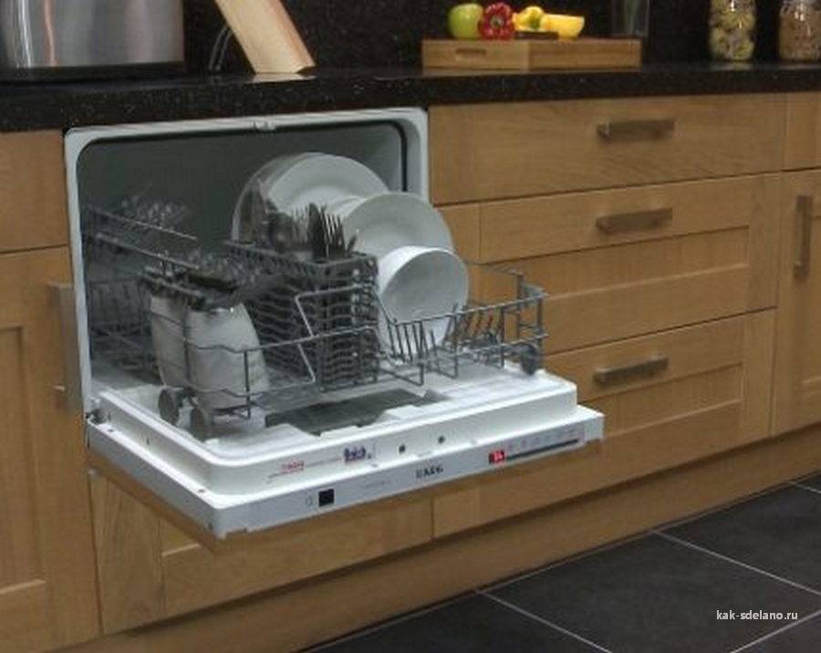 Если места мало, а машинку нужно замаскировать, подойдет встраиваемая компактная модель. Для больших кухонь возможны различные варианты, но отдельностоящие посудомойки выбирают реже.