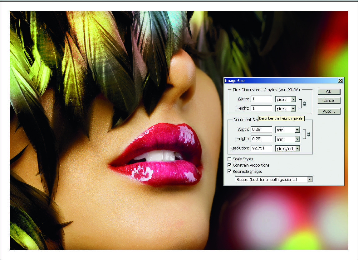 После добавления необходимых полей, при помощи команды Image Size необходимо уменьшить изображение до размера 1 Х 1 Pixel.