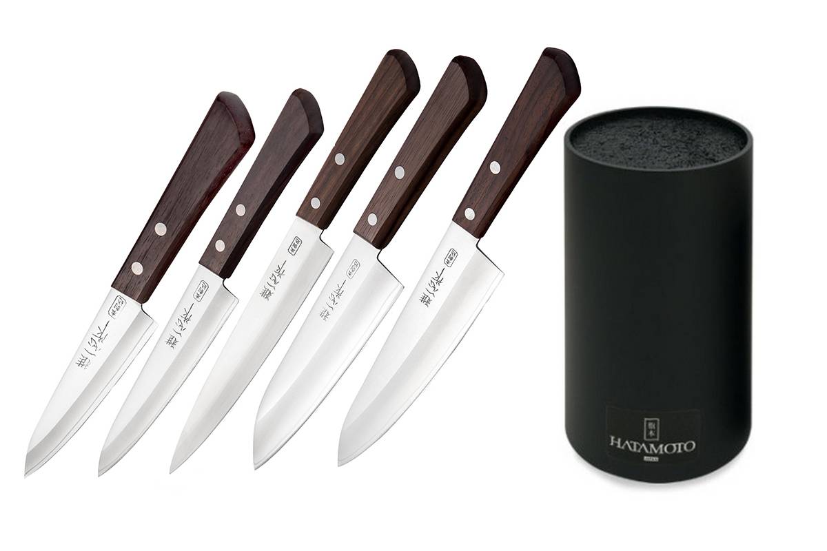 Широко популярный бренд. Заточенные с двух сторон, с деревянной рукоятью с выверенным центром тяжести, изделия удобно держать в руке. Ножи производят из дамасской высокопрочной стали и стали марки VG-10, обладающей нержавеющими свойствами.