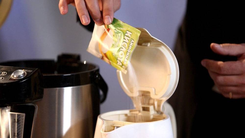 В литре воды требуется развести одну столовую ложку лимонной кислоты, залить жидкость в чайник и прокипятить в течение несколько минут. Затем рекомендуется ополоснуть чайник пару раз проточной водой.