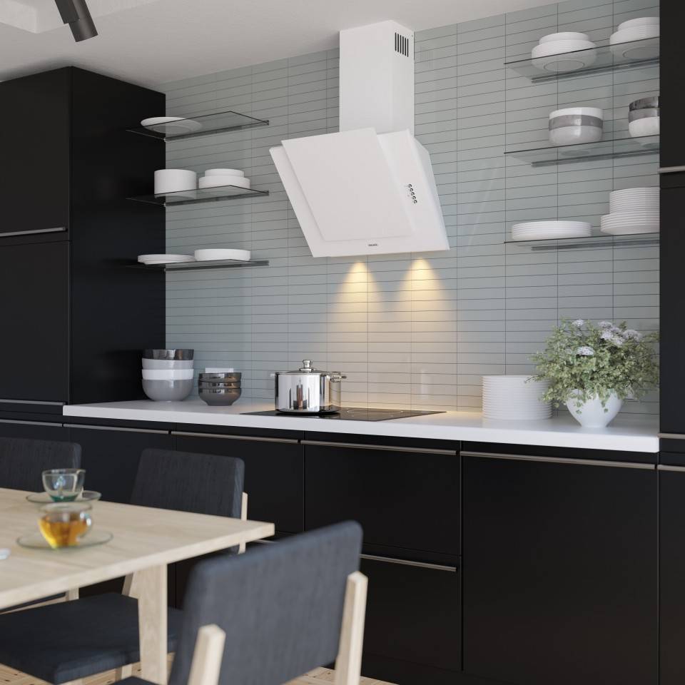 Главное достоинство таких вытяжек в том, что вы можете самостоятельно регулировать угол наклона, и это позволяет установить устройство в оптимальном положении для захвата большего объема воздушного потока. По сравнению с неподвижными вытяжками, которые не позволяют регулировать направление вытягивания воздуха, наклонное оборудование не ограничено по зоне действия.