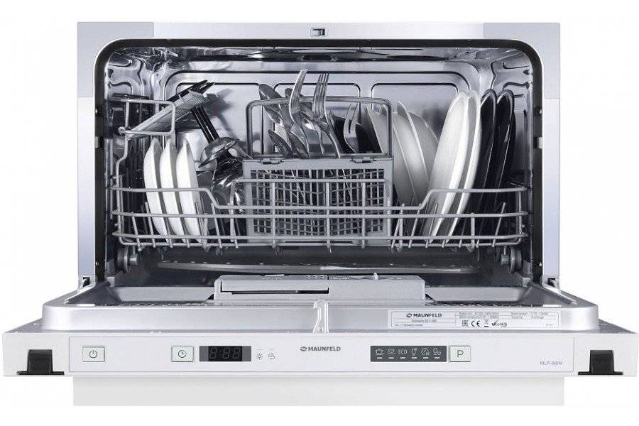 Существенный минус небольшого устройства заключается в его меньшей вместительности по сравнению с большими моделями. Если небольшая посудомойка вмещает от 4 до 6 комплектов, то полногабаритная — 12-14. Практика показывает, что компактной версии вполне достаточно для среднестатистической семьи из 2-3 человек, чтобы пользоваться посудомойкой не чаще раза в день. Есть и другие недостатки: