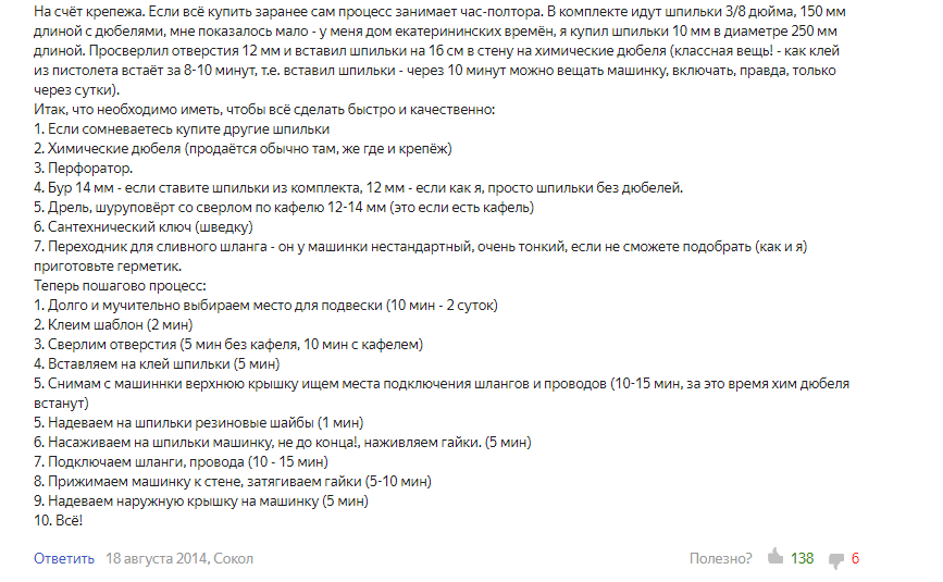 Пошаговый мастер-класс по установке навесной стиральной машинки: