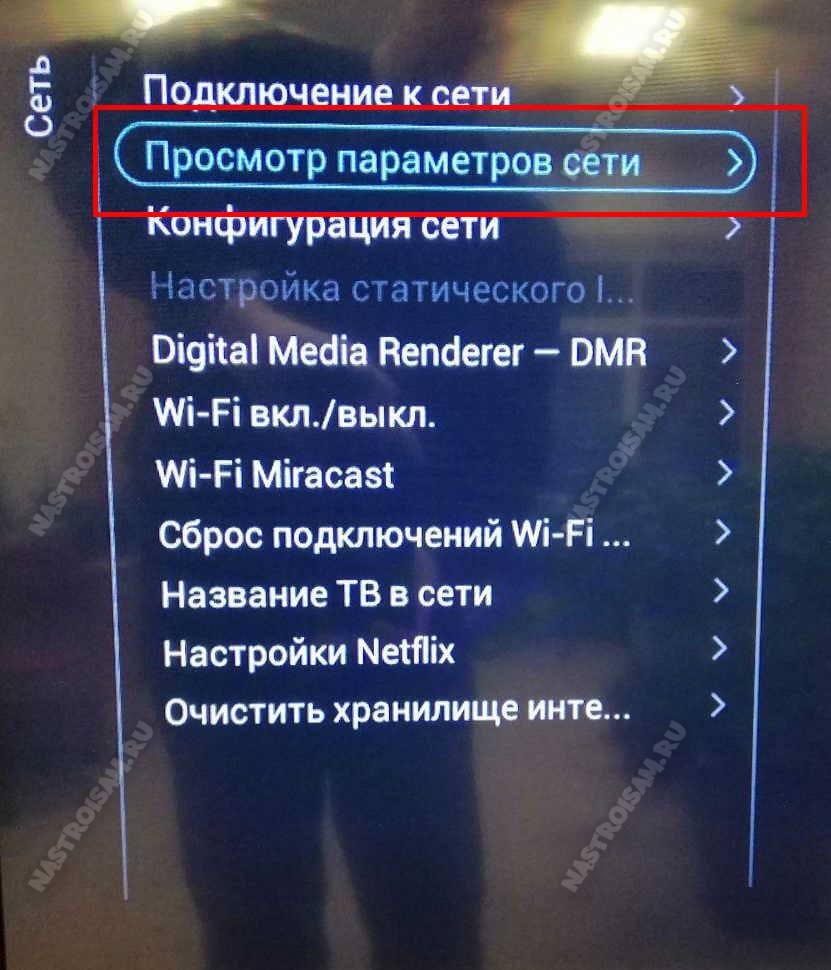 Далее можно будет в разделе меню «Сеть» выбрать раздел «Просмотр параметров сети»: