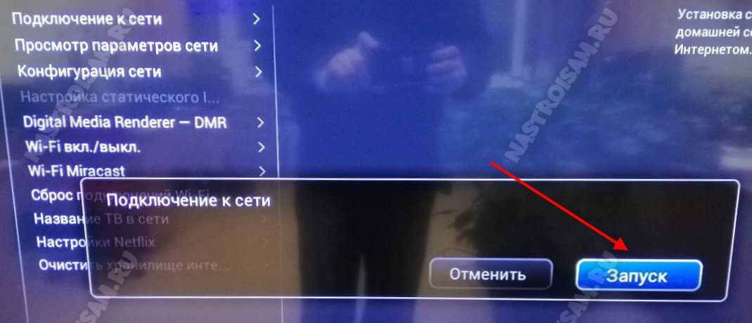 Телевизор предложит запустить мастер подключения. Соглашаемся и нажимаем на кнопку Запуск: