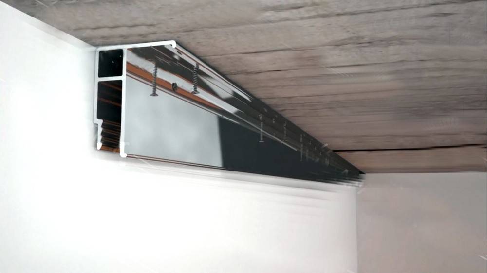 Как соединить шкаф-купе с натяжным потолком с помощью закладной