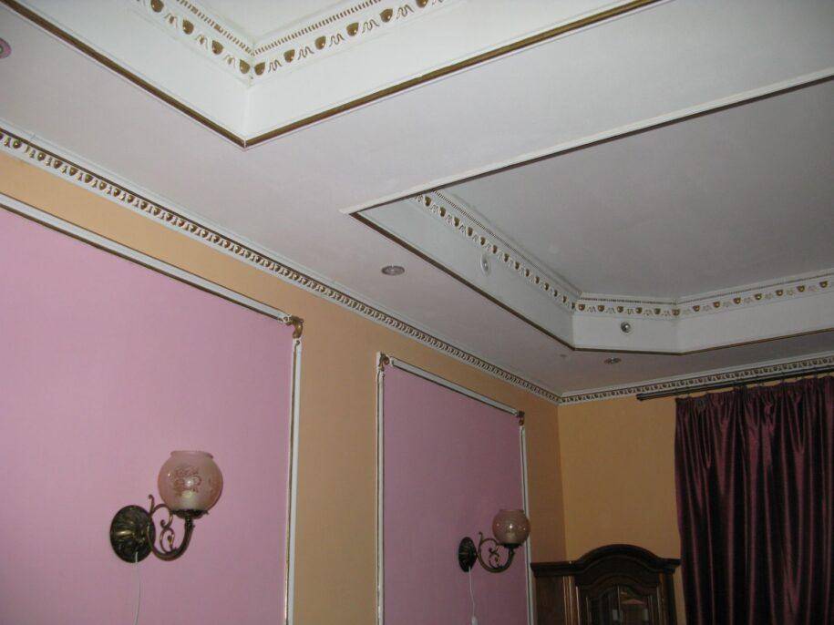 Важно, чтобы оформление потолочной конструкции отвечало общей концепции стиля. Классические правила подразумевают выбор потолка на два тона светлее