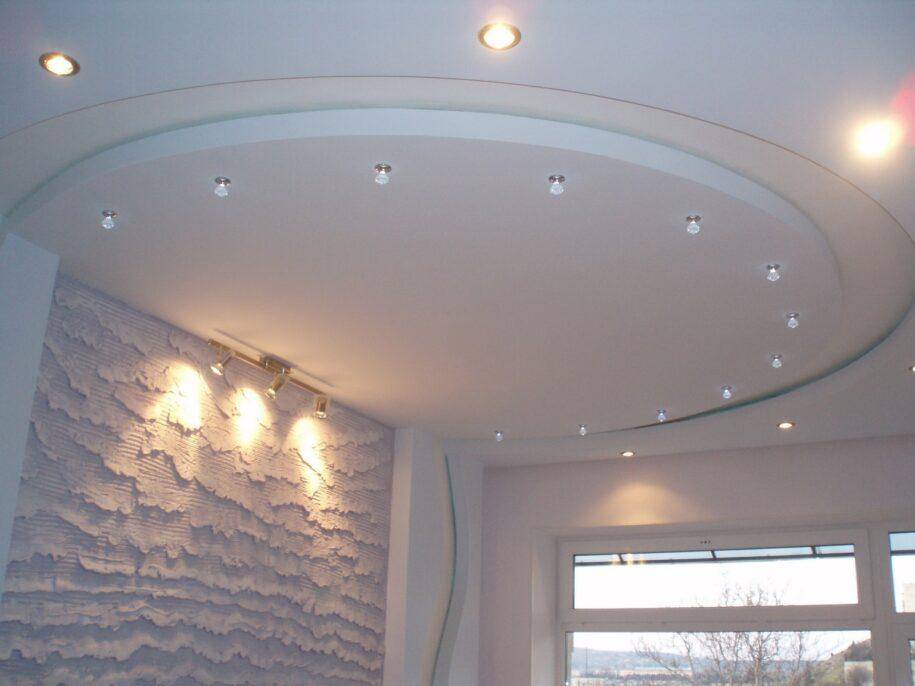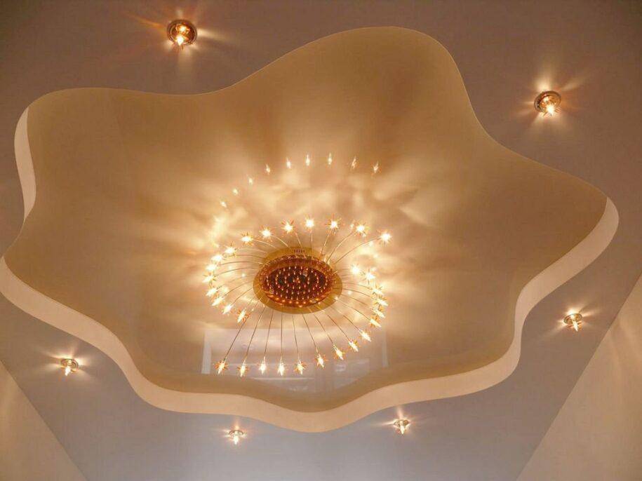 Двухуровневые конструкции с высокой центральной частью. Несмотря на то, что стены потеряют в высоте, сама комната будет казаться выше.