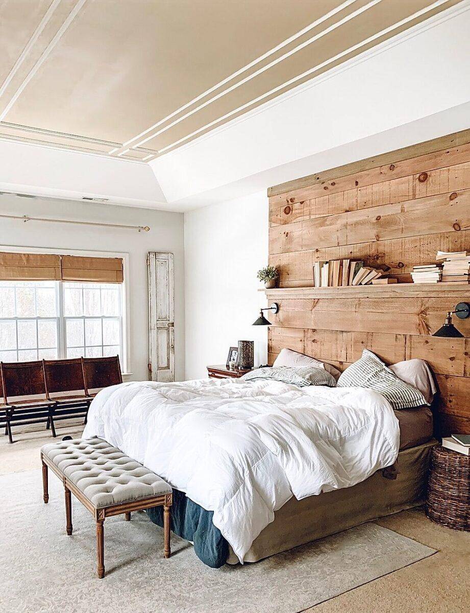 На помощь придут конструкции из гипсокартона. Кроме того, мансардный или скошенный потолок, а также стены такой спальни можно обшить вагонкой или панелями МДФ. Такой вариант дизайна один из самых бюджетных.
