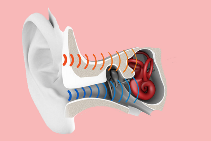 Человек одинаково эффективно воспринимает информацию от внешнего и среднего уха. Для мозга нет разницы, откуда поступает колебание к чувствительным клеткам внутренней части слухового аппарата.