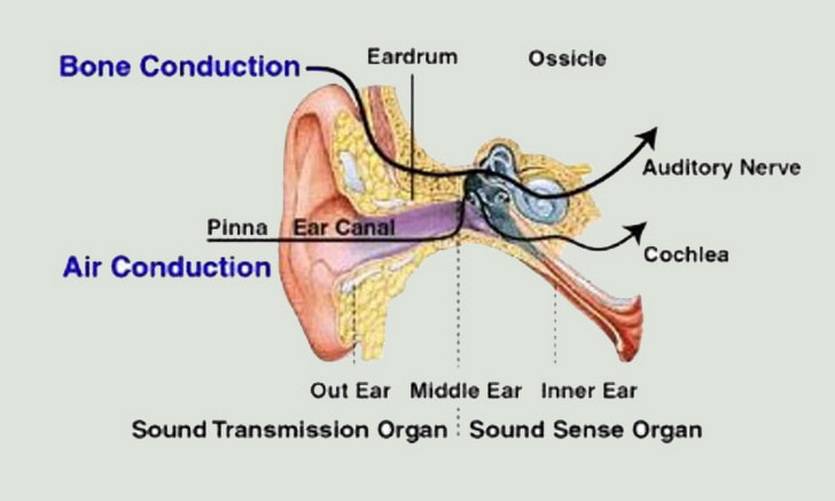 Долгое время наушники с костной проводимостью оставались исключительно медицинским приспособлением для слабослышащих. Как и в истории с Бетховеном, они позволяли людям с проблемным восприятием «чувствовать» и разбирать звук с помощью вибраций, проходящих через череп рядом с их внутренним ухом. Механизм такого способа передачи звука довольно прост, и для его понимания требуются лишь базовые познания в строении наших ушей.