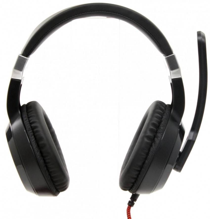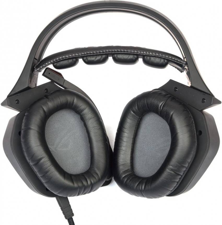 Дуга оголовья изготавливается из нескольких элементов, что позволяет отрегулировать ее диметра, причем она довольно широкая, не будет ломаться даже под серьезными физическими нагрузками или вследствие длительной эксплуатации. Ближе к самим чашам оголовье переходит в небольшие площадки, где размещаются сами наушники. С внешней стороны они дополнительно декорированы кольцами из глянцевой пластмассы. Чаши наушников обладают средним размером, однако они довольно большие для качественной передачи звука, но не будут делать конструкцию слишком тяжелой. Наушники крепятся на шарнирах, поворачиваются так, чтобы как можно плотнее прилегать к голове. Микрофон поворотного типа, находится на левой стороне, хорошо передает звук, подавляет большинство посторонних шумов, обеспечивая чистое звучание.