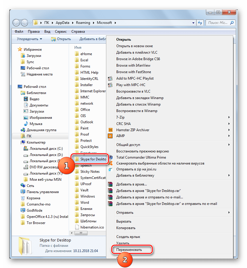 Способ 4: восстановление работы Скайпа при повреждении файлов