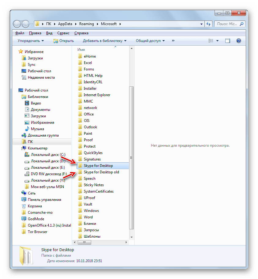 - Копируем в появившееся окошко команду %appdata%MicrosoftSkype for Desktopskylib.