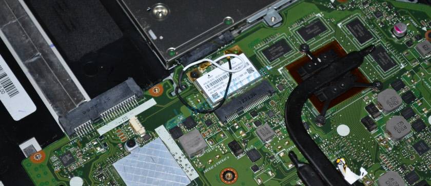 Теперь аккуратно вставляем Wi-Fi плату в разъем на ноутбуке, прикручиваем ее и подключаем антенны.