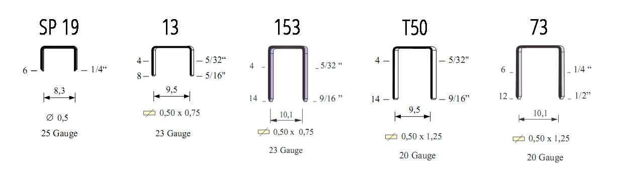 Для каждого мебельного степлера подходят свои типы скоб. Их существует большое количество и все они различаются по размерам. Наиболее часто требуются скобы, подходящие под мебельный степлер типа 53 и 140. Они обладают следующими параметрами: