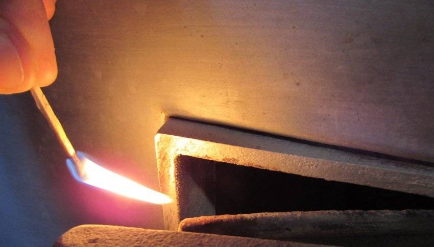 - При помощи спички. Если поджечь спичку или свечку, и поднести к прибору отопления, при хорошей тяге пламя будет наклоняться в сторону топки. При ровном горении пламени можно говорить об отсутствии вытяжки. Если же пламя будет наклоняться в сторону от дымохода, здесь имеет место обратная тяга.