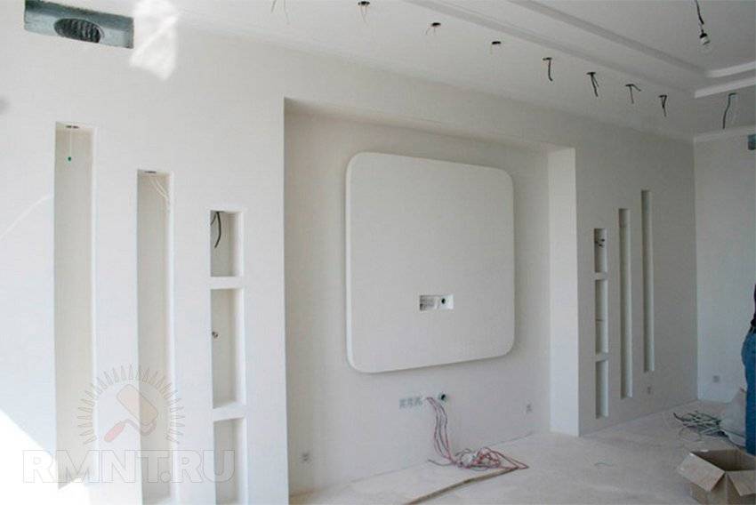 Следовательно, стенка из гипсокартона для телевизора будет значительно меньше, чем в гостиной и зале.
