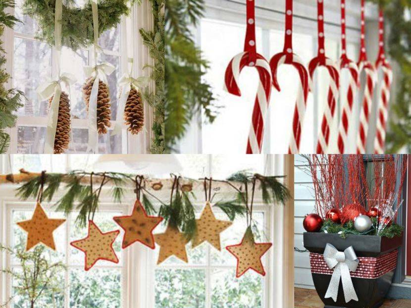 Самым бюджетным, но от того не менее нарядным вариантом, является украшение окошек бумажными снежинками. Для этого понадобятся только ножницы, белая бумага или серебристая фольга и ваша фантазия. Вариаций таких снежинок можно придумать множество и сделать либо абсолютно различные элементы, либо композицию в одном стиле. Из разноцветной бумаги также можно сделать шары оригами, фигурки для пестрых гирлянд, прочие поделки, используя лишь клей и ножницы.