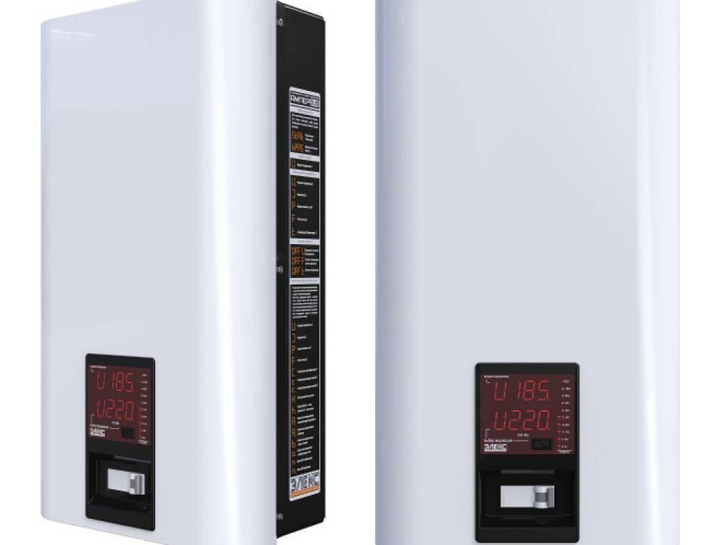 - «Энергия Voltron». Прибор способен стабилизировать вольтаж в диапазоне от 105 В до 265 В. Он может работать в широком диапазоне температур, что делает данную модель отличным выбором для деревенского дома. Прибор безопасен в использовании, защищен от скачков напряжения и короткого замыкания. Единственный недостаток – большие габариты и масса.