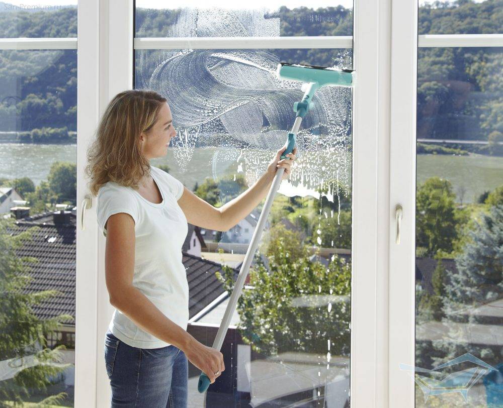 Но как быстро помыть высокие окна , если у вас такой щётки нет? Опытные хозяйки советуют использовать швабру. Нужно сначала обмотать чистящую часть швабры влажной тканью и помыть окно. После заменить ткань на сухую и протереть стёкла.