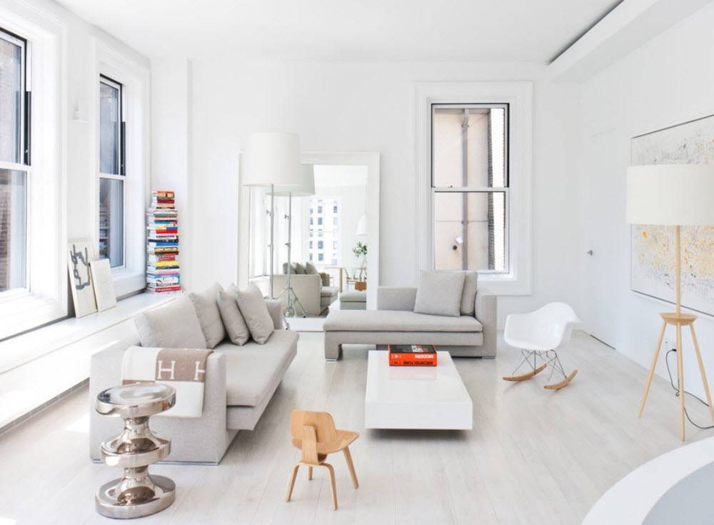 Для современных направлений, таких как хай-тек или минимализм, белый ламинат станет одним из лучших интерьерных решений. Цвет поддерживает строгость и простоту дизайна, при этом визуально приумножает пространство и выглядит очень эффектно.