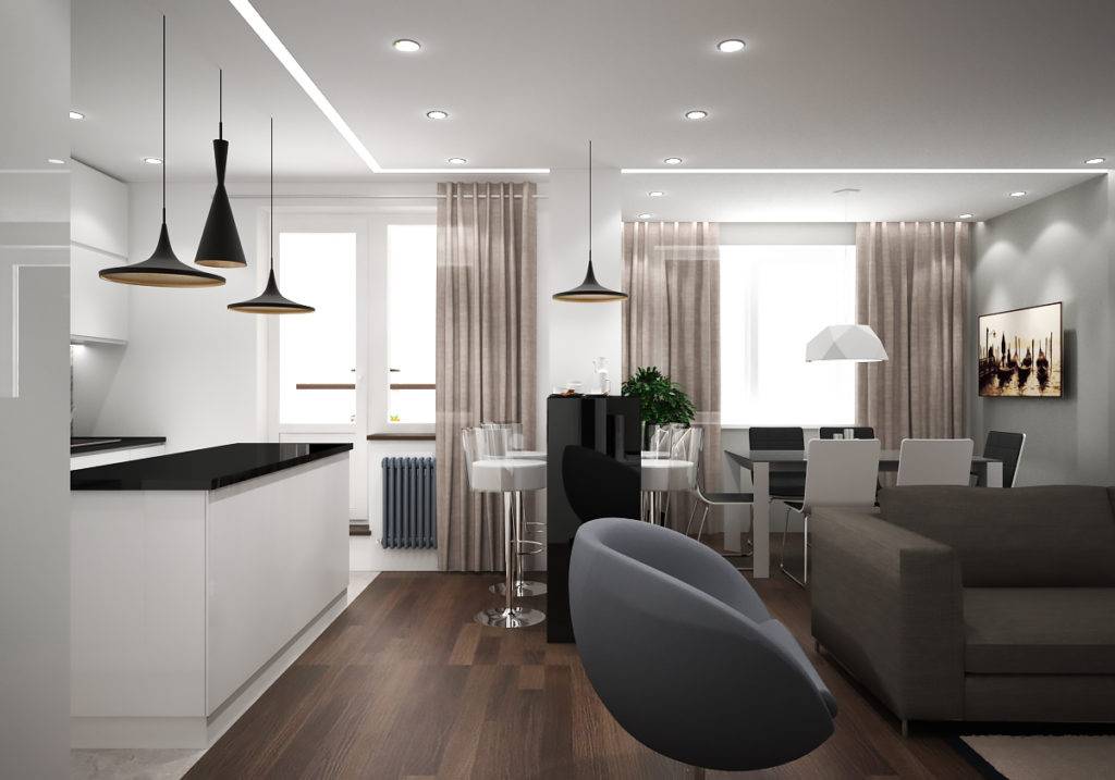 Что обеспечивает поступление естественного света, придает легкость помещению. Для укрытия от посторонних глаз можно использовать рулонные, римские шторы. Люстрами гостиные минималистичного стиля оснащаются редко. Предпочтение отдается встроенным осветительным системам.
