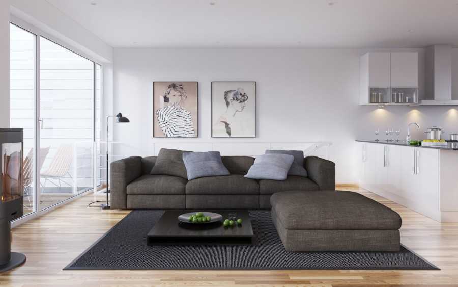 Гостиная в стиле минимализма является наиболее выгодным вариантом по