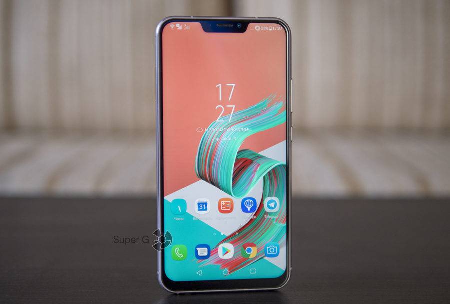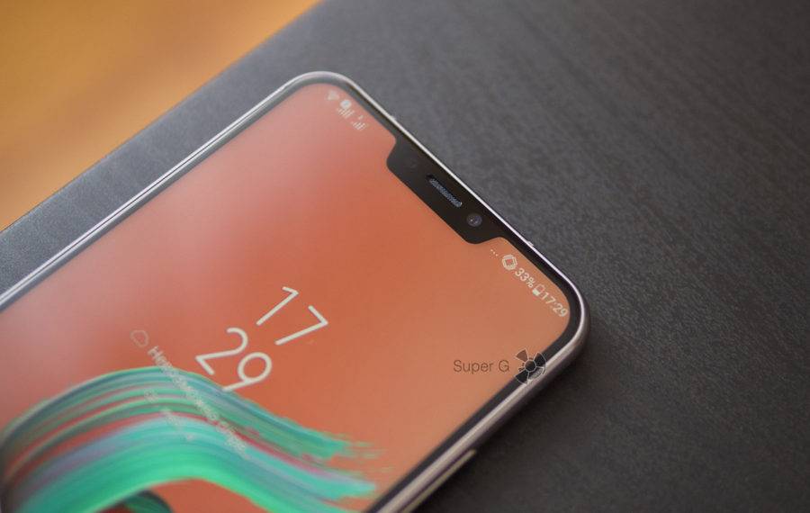 Экран у ASUS ZenFone 5Z большой, 6,2-дюймовый, а установлен он в корпусе, который (по своим габаритам) предназначен для 5,5-дюймового смартфона. Для того, чтобы большой дисплей уместился в скоромном корпусе, понадобилось «вытянуть» его вверх: изменить соотношение сторон и увеличить разрешение до 2246х1080 пикселей. Также экран получил вырез в своей верхней части – в нём умещается динамик, камера и необходимые сенсоры.