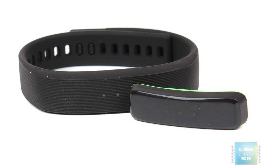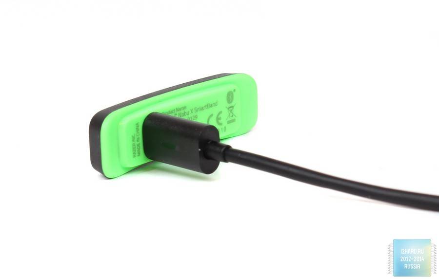 Основной блок со всей электроникой представляет из себя небольшой пластиковый модуль, верхняя часть из чёрного пластика, а нижняя из зелёного. Выглядит довольно надёжно, пластик очень качественный. Стоит отметить и принцип крепления модуля в резиновому браслету, он простой, но крайне надёжный. Модуль вставляется в клубокую выемку на внутренней части браслета, фиксируется там крепко, никаких опасений о том, что вы потеряете этот модуль нет. Для того, чтобы было видно световую индикацию, в резине имеются небольшие прорези. Модуль заряжается от USB порта компьютера, полный заряд занимает около 2 часов. Работает браслет от одного заряда от 6 до 8 дней в зависимости от интенсивности использования, результат далеко не рекордный, есть конкуренты с более длительным временем работы, но нужно сказать, что заряжать устройство раз в неделю на протяжении 2 часов совсем не доставляет неудобств.