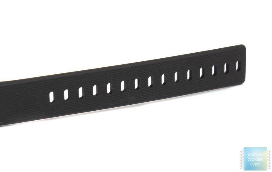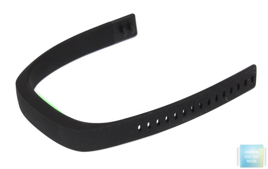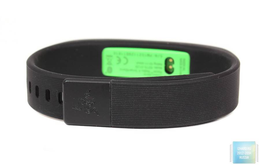 Застёжка максимально простая, представляет из себя металлическую пластинку с парой штырей, которые очень плотно вставляются в отверстия браслета. На застёжки фирменный логотип Razer. Регулировка размера довольно широкая, браслет подойдёт как на тонкую руку ребёнка, так и на взрослого мужчину. На руке девайс держится очень крепко, во время активных занятий фитнесом не было даже намёка на то, что он случайно расстегнётся.
