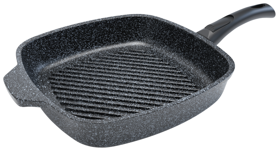 Гранитное покрытие является усовершенствованным аналогом тефлонового. Гранитное покрытие удобное, безопасное, прочное. В составе присутствуют вкрапления гранита, но основой его является PTFE. Мизерный процент каменной крошки усиливает антипригарный эффект, поскольку слой получается более толстым, чем просто тефлон. Толщина стенок сковороды — от 3 мм.